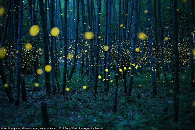 ![]() 9/18日本摄影师Kei Nomiyama拍摄了当地雨季时分,萤火虫在树林飞舞的浪漫景象。
