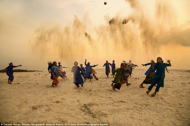 ![]() 15/18孟加拉摄影师Tanveer Rohan拍摄了宗教学院的孩子们,在沙地踢足球玩耍的场面。