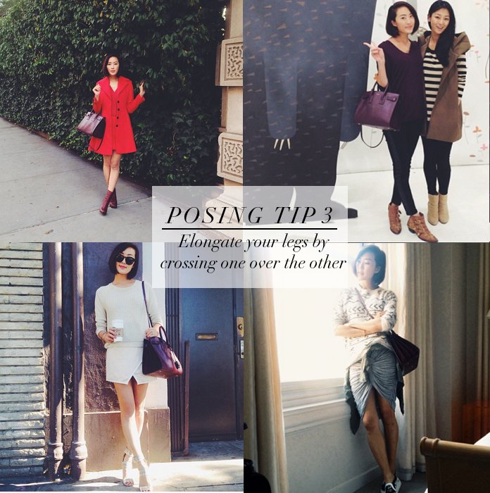 不知道你有没有发现,无论是坐着或站着,模特儿常常摆出双腿交叉的姿势,原因没有别的,就是因为这样把一脚往前伸的动作能让腿部拉长、腿型更好看。看看右上Chriselle和朋友Sara的合照中,两人有着同样的身高,却因为Chriselle双腿交叉而让她看起来比Sara还高!(这就是女孩的小心机呀)