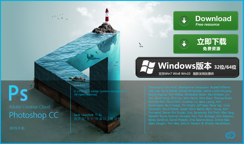 Photoshop CC 5.5 版本更新了四大逆天新功能,新功能使用教程请击:http://www.yxwps.com/course/311 Windows版32位/64位的软件安装包请点击下图: 本安装包来于源网络整理,仅供学习参考之用,禁止用于商业及其他用它目的,违者影享网不承受连带责任特此声明。