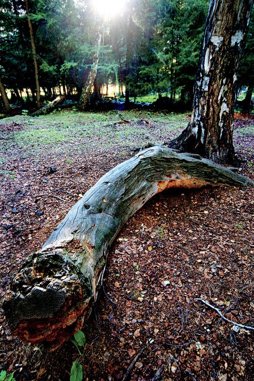 侧逆光拍摄可以增强树林的神秘感。