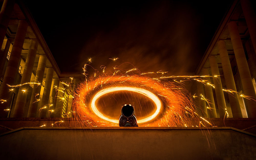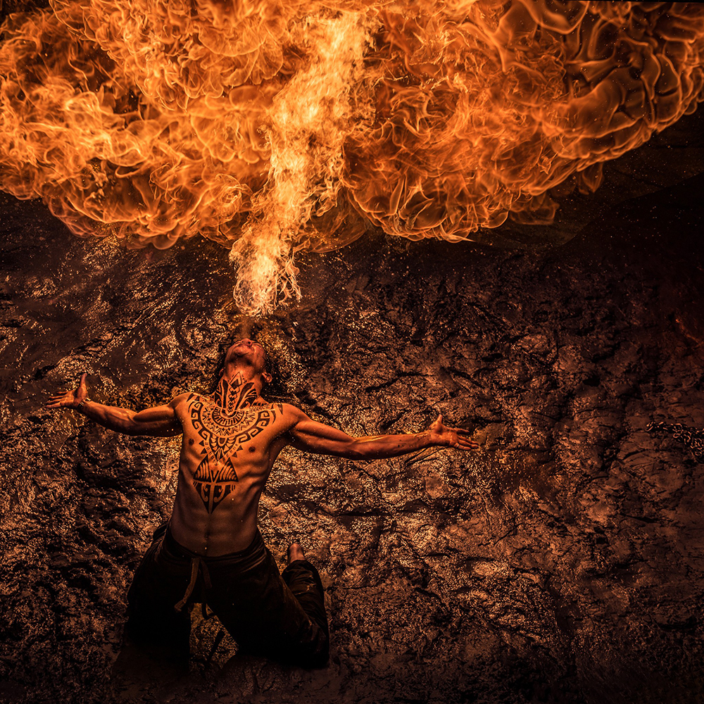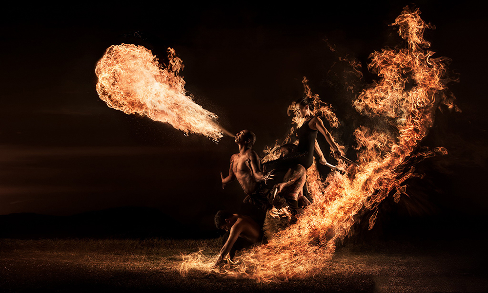 Benjamin Von Wong十分钟情创意摄影,他认为是一些梦境启发他推动它挑战不可能的事,创造独特的引人注目的艺术作品。在以下摄影作品中,他请了一位擅长玩吐火杂技的朋友作为拍摄主角,让后者点燃自己,做不同动作,与此同时,他将着火的朋友巧妙地拍下来。每幅作品中光线的独到使用恰到好处,加强了这些扣人心弦的作品的效果和震撼力。