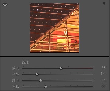 下一步,锐化整个画面。锐化数量83。