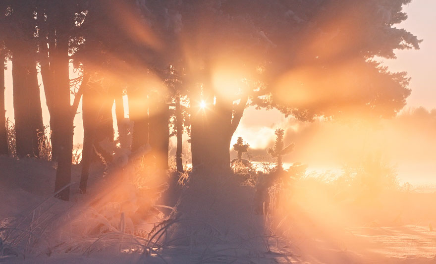 白俄罗斯是一个风光秀丽的国家,虽然很少有人知道它位于西方。值得庆幸的是,白俄罗斯摄影师Alex Ugalek在去年冬天的清晨拍下了他在乡村旅行时发现的绝美雪景。