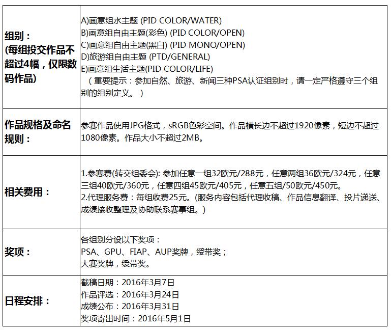 一、本次摄影大赛由美国摄影学会(PSA)、国际影艺联盟(FIAP)、环球摄影家联盟(GPU)、阿拉伯摄影家联盟(AUP)认证。赛事简称:Genius。PSA会员所有入选作品将计入美国摄影学会的“星标系统”和“世界摄影名人录”。