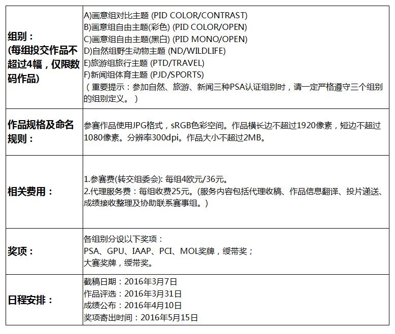 一、本次摄影大赛由美国摄影学会(PSA)、环球摄影家联盟(GPU)、国际艺术摄影家联盟(IAAP)认证。赛事简称:CONTRAST BOSNIA。PSA会员所有入选作品将计入美国摄影学会的“星标系统”和“世界摄影名人录”。