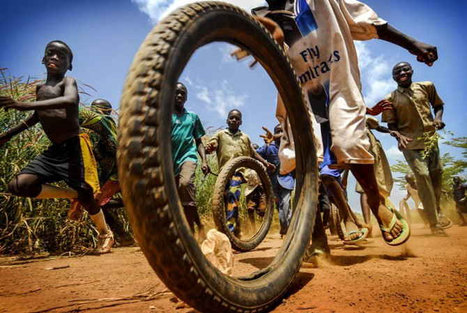- 简介︰摄于西非国家多哥,诊所内病人们的孩子正在NGO诊所外玩单车轮胎。