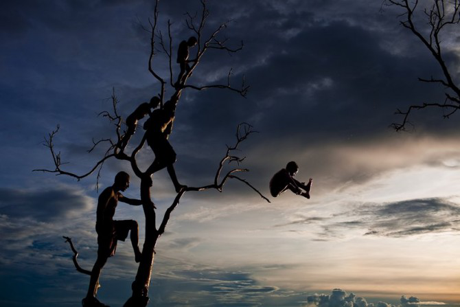 - 简介︰摄于巴布亚新几内亚的 Lake Murray,孩子们赶在日落前多跳一次。
