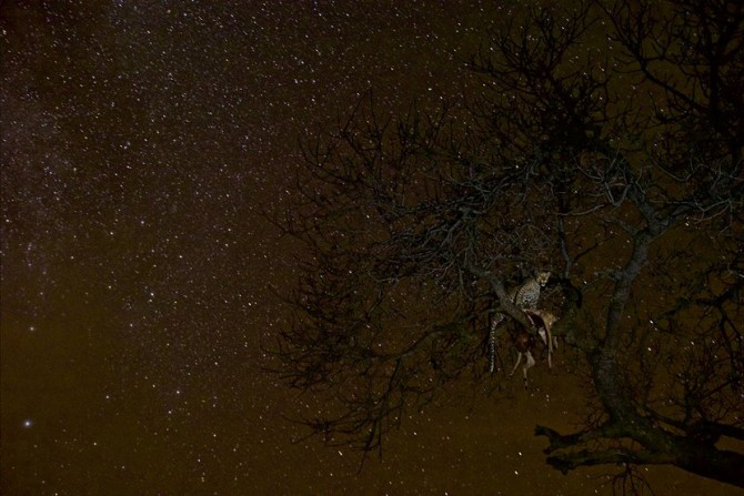 - 简介︰星空下的豹与猎物,结合天文与生态摄影的作品。