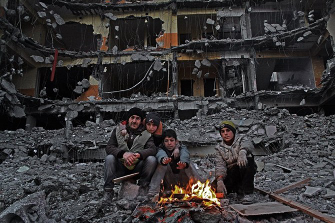 - 简介︰摄于土耳其,地震后一家人正用瓦砾杂物点火取暖。