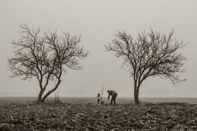 - 简介︰这是摄影师的自拍照片,正在浓雾中与孩子植树。