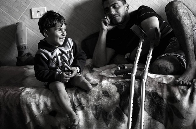 - 简介︰摄于加沙,两父子皆于 2014 年以色列轰炸中失去了下肢。