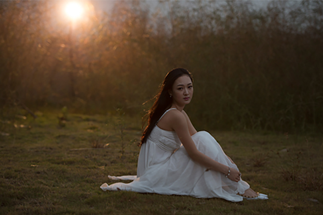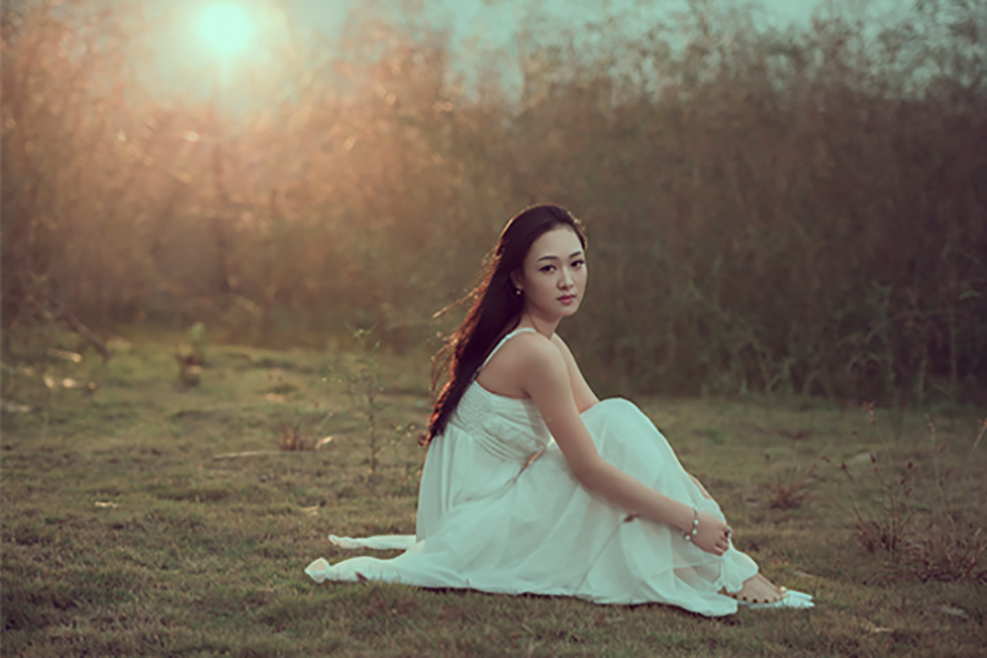 这张片,原图比较暗,首先是要提高人物的整体亮度,最后再做调色:这是一张普通的艺术写真,原图拍摄的光线不错,在做后期处理时,既要突出阳光的温暖,还要表现出模特的柔美,色彩处理上,采用了黄色和青色的混合,让照片看起来舒适自然。