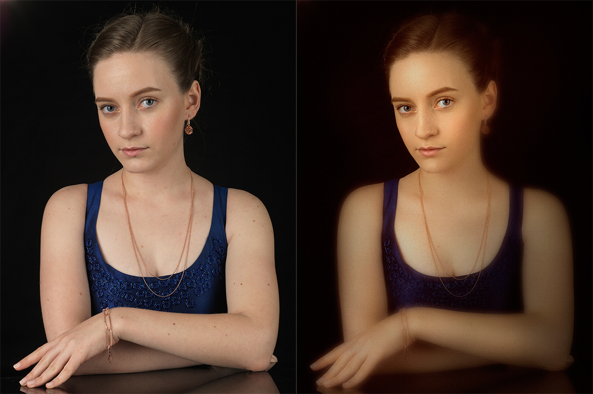 这是模仿西方油画的色彩,来对图像进行调整的。原图的人物拍摄的感觉,很有西方油画人物的味道。所以在后期处理时,尽量往油画的色调去靠拢,或者拿一张经典油画对着去调色。