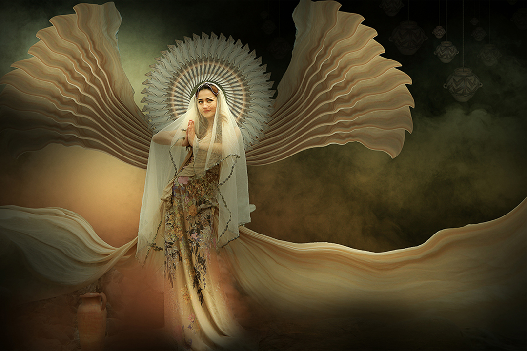 我们这节课来给大家分享创意合成,这张照片的创意是根据古楼兰的一些记载,反映当年古楼兰的盛世繁华和载歌载舞的情形,效果图的素材主要是营造古楼兰的华丽与神秘,在色调上运用了油画的手法来渲染,将画面的层次给表现出来。