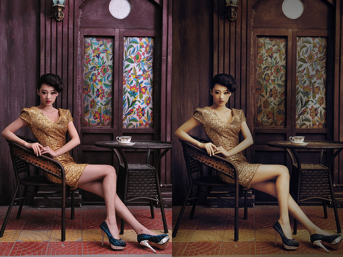 什么是时尚怀旧色调?它是以人物的时尚服装和造型为分析点,搭配怀旧的场景,来调制的色彩。这种色彩的特点是:饱和度低,整体色调偏黄,暗部偏蓝。原图的前期拍摄的很不错,光影和人物的肢体语言都非常好,色彩上如果再艺术话一些,会让图像看起来更加漂亮。