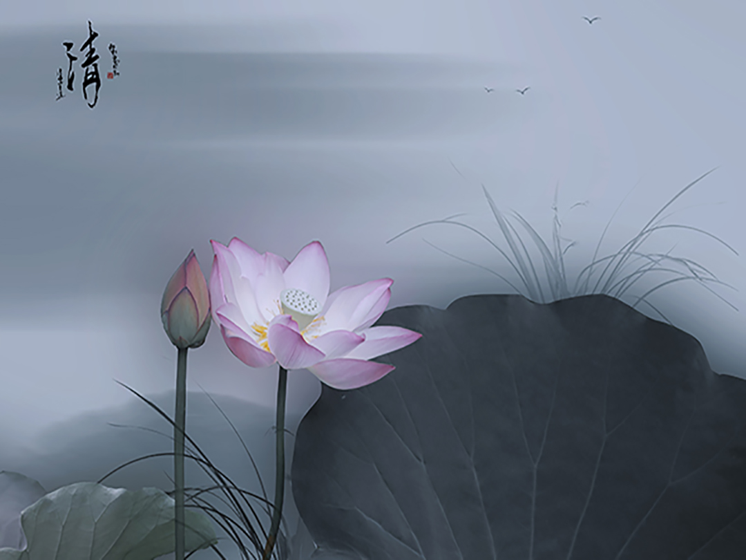 这节课给大家讲解一个荷花的特效,清雅风格,这种风格似水墨而又非水墨。水墨中带一点轻柔的青色调。看上去非常的淡雅和柔和。十一里清风吹来,在炎热的夏季,带来一丝凉意。接下来我们来看下这种清雅风格的荷花到底是怎样制作的。