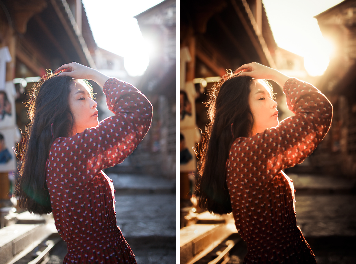 这是在云南丽江拍摄的一张逆光片。大家都知道逆光和侧逆光是很好的光源,因为人物不会直接面对光线,所以不会显得很柔和。拍摄逆光片的关键点在于光源和相机的夹角。它直接关系到光线进入相机的数量,最终会影响到相机的拍摄效果。所以在拍摄的时候仔细移动到你的相机,通过取景器认真的观察相机的光线的数量,控制好数量就能拍出很好的片子。下面是解决对焦问题的三种方法: