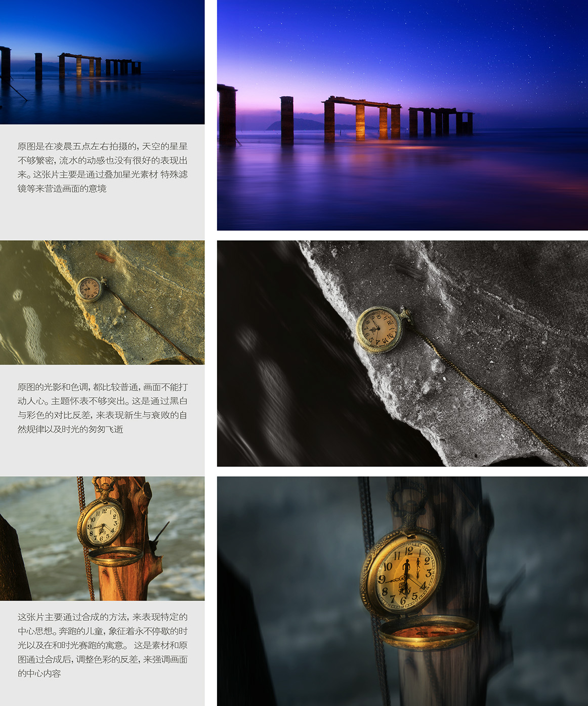 这是在汕尾凌晨五点左右拍摄的拍摄的一组片,主要通过怀表来描述时间的飞速流逝日出日落,斗转星移,奔跑的儿童,流动的黄沙以及转动的表盘,无不演示着岁月的无情流转。
