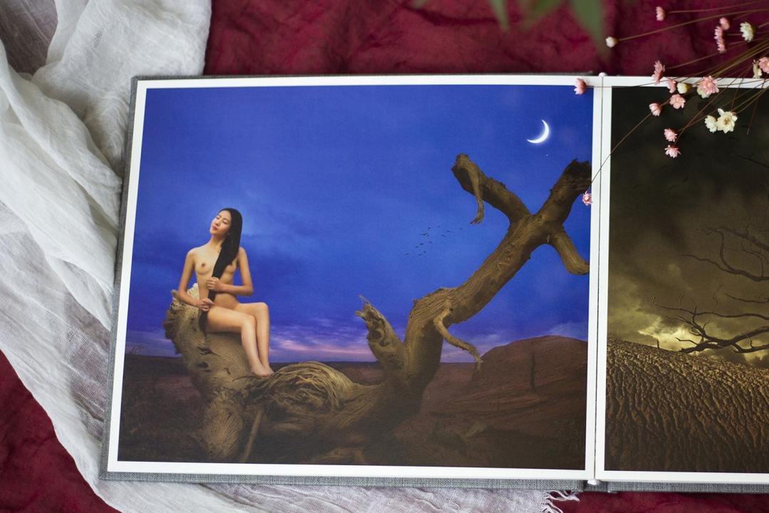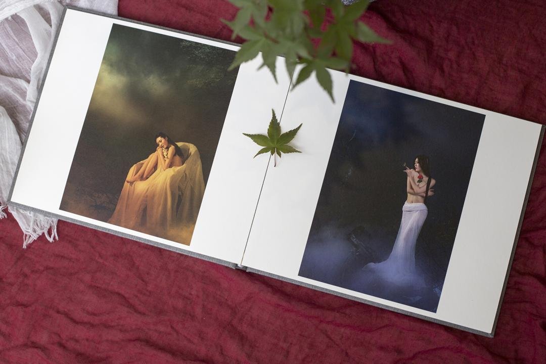 它和我的另一本画册《境界·人像摄影作品》,同步发行。本画册采用260克米白色肌理艺术纸印刷。封面采用高档牛皮纸和棉麻纹硬壳精装,蝴蝶版式跨页设计,让每幅作品像明信片一样更有质感。另外附带亲笔签名。