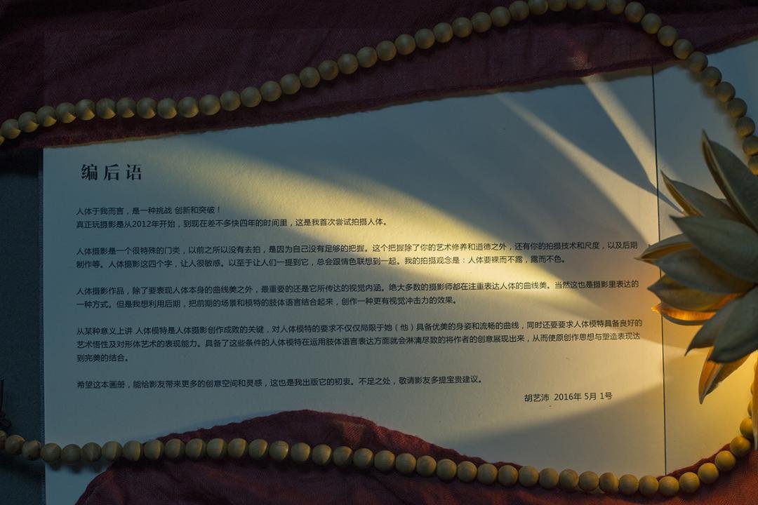 人体于我而言,是一种挑战 创新和突破!真正玩摄影是从2012年开始,到现在差不多快四年的时间里,这是我首次尝试拍摄人体摄影。人体摄影是一个很特殊的门类。以前之所以没有去拍,是因为自己没有足够的把握。这个把握除了你的艺术修养和道德之外,还有你的拍摄技术和尺度,以及后期制作等。