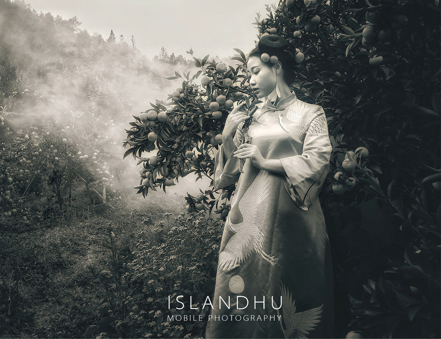 桔子在中国代表吉祥如意,中国人逢年过节喜欢在家放盆桔子盆栽,代表吉祥如意,这次摄影创作我们特意选择一个百亩桔子林作为创作背景。手机拍人像,除了我们前期做好充分准备以外,怎么拍好,怎么构图,透过什么样的视角来凸显我们的创意,这是我们需要认真思考的问题。