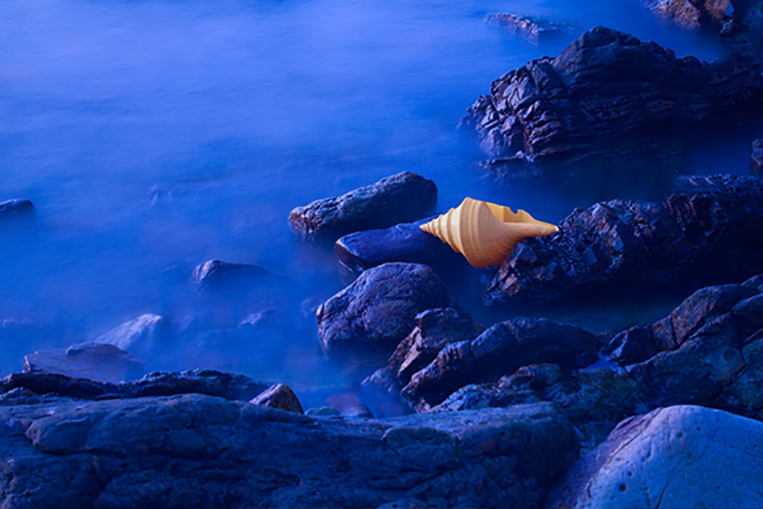 这是通过改变色温的方法,使画面产生强烈的冷暖对比,让海螺更加突出和跳跃。原图本身的海水,就泛着些许青蓝色,只是金黄色的海螺在画面当中不太突出。