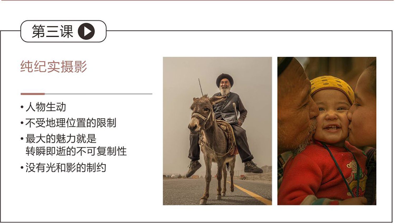 旅行中,一边不仅要尽情欣赏大美的风光,一边还要有意识地让自己的眼睛左顾右盼,敏锐地去捕捉那些一晃而过的瞬间。旅拍中抓取的纪实瞬间是最鲜活的,纪实摄影切忌不能脱离主题,只顾玩弄形式,拍些模棱两可的东西,纪实片最主要的特性就是故事性。