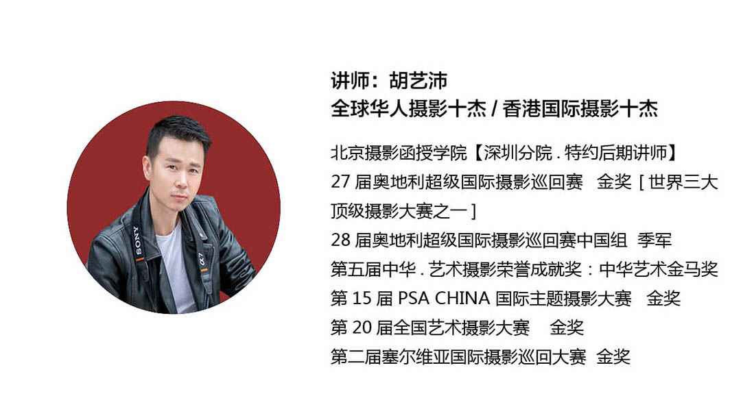在人生旅途中,知心者同路,在摄影生涯中,同路者同行,环境人像这样一个题材,这样一片天地,这样一个创作空间,等待你我来发掘,一个点拨,一个起点,便一个创意。亦师亦友同源一腔热情。本直播课程胡艺沛老师主讲,将自己几年来环境人像创作心得毫无保留的呈现给大家。