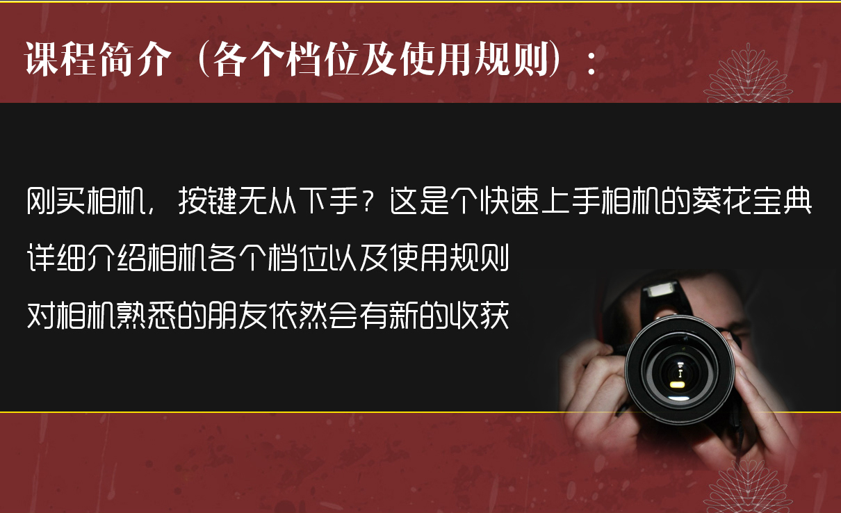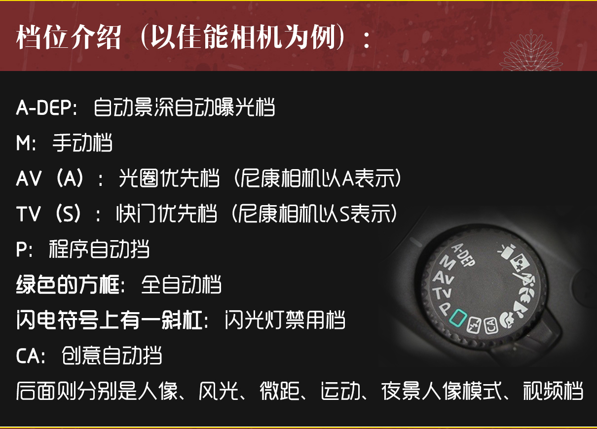 一台崭新的单反相机拿到手时,对于一个新手来说除了有些兴奋之外应该还有一点头大,看见上面有那么多按键,以及菜单里复杂的参数设置时会不会感到无从下手?所以就很有必要了解下相机的各个档位以及使用规则。今天,为大家带来关于单反相机常用档位介绍及使用规则,希望能给带来大家帮助。当然熟悉的朋友也可以再看看温习无妨,说不定会有新的收获又或者有些档位是你以前没用到过的。