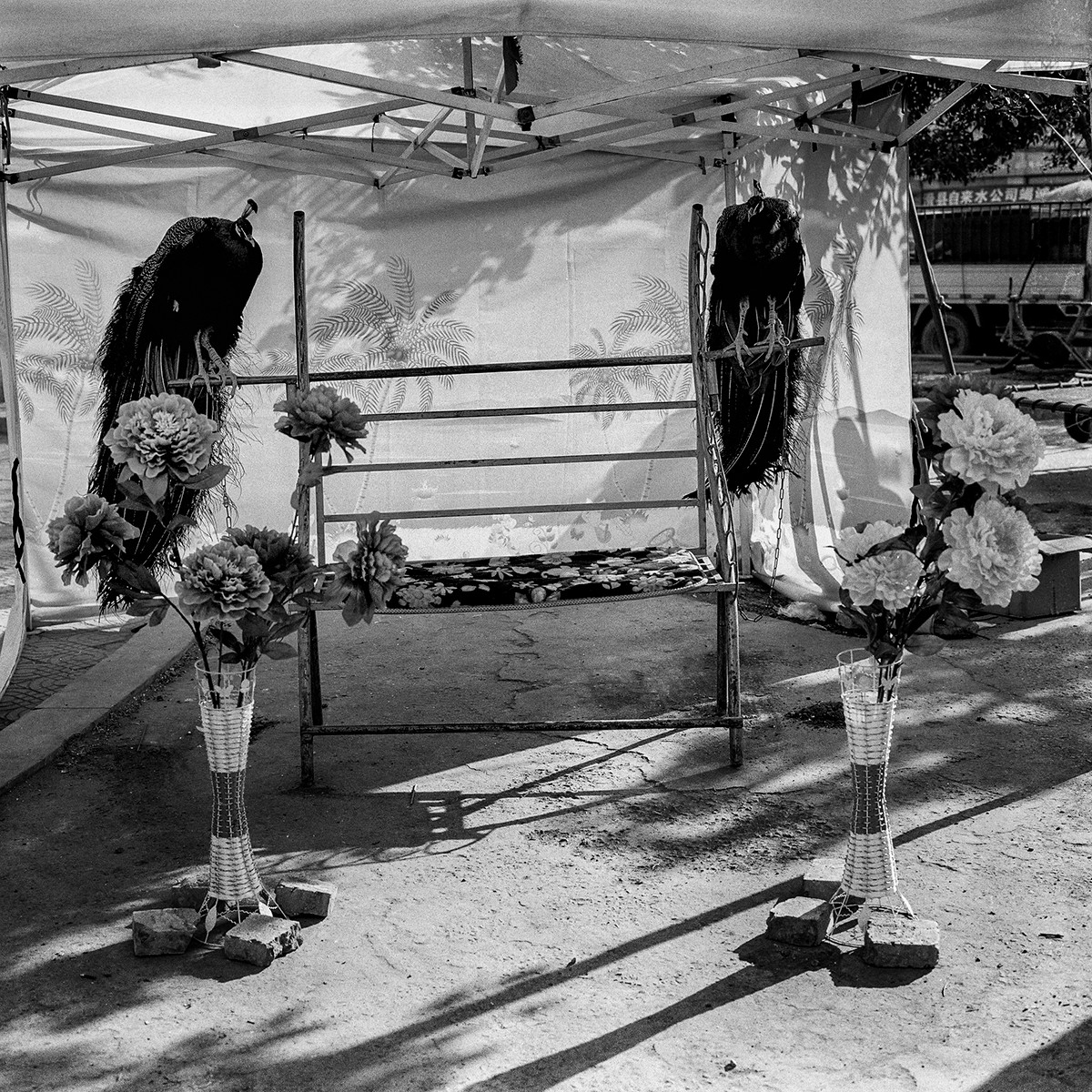 2012年9月,有关乡村照相馆的背景布——《背景》在平遥国际摄影大展展出。